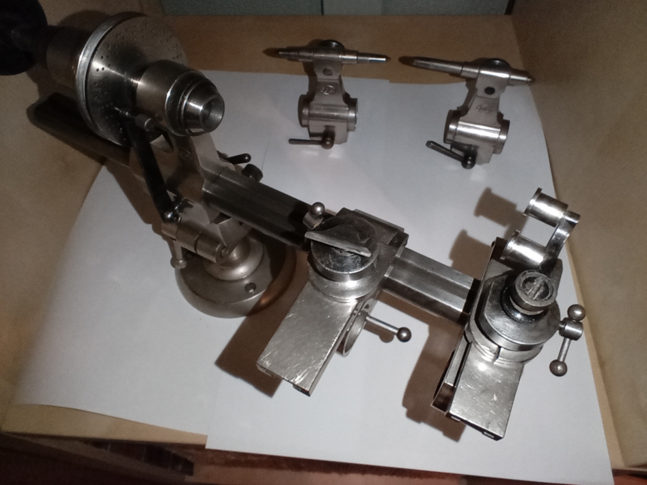 Boxed BOLEY 8mm Watchmaker lathe with many accessories as shown in the photographs. The lathe bed is 26 cm long with a diameter of 20mm marked at the end with G. Boley Germany 688. The maker's fitted box has eighteen collets 5mm to 22mm. The lathe is complete with a screw-feed compound slide rest, two tailstocks, flip-up tool rest, and a complete carriage-mounted filing rest.