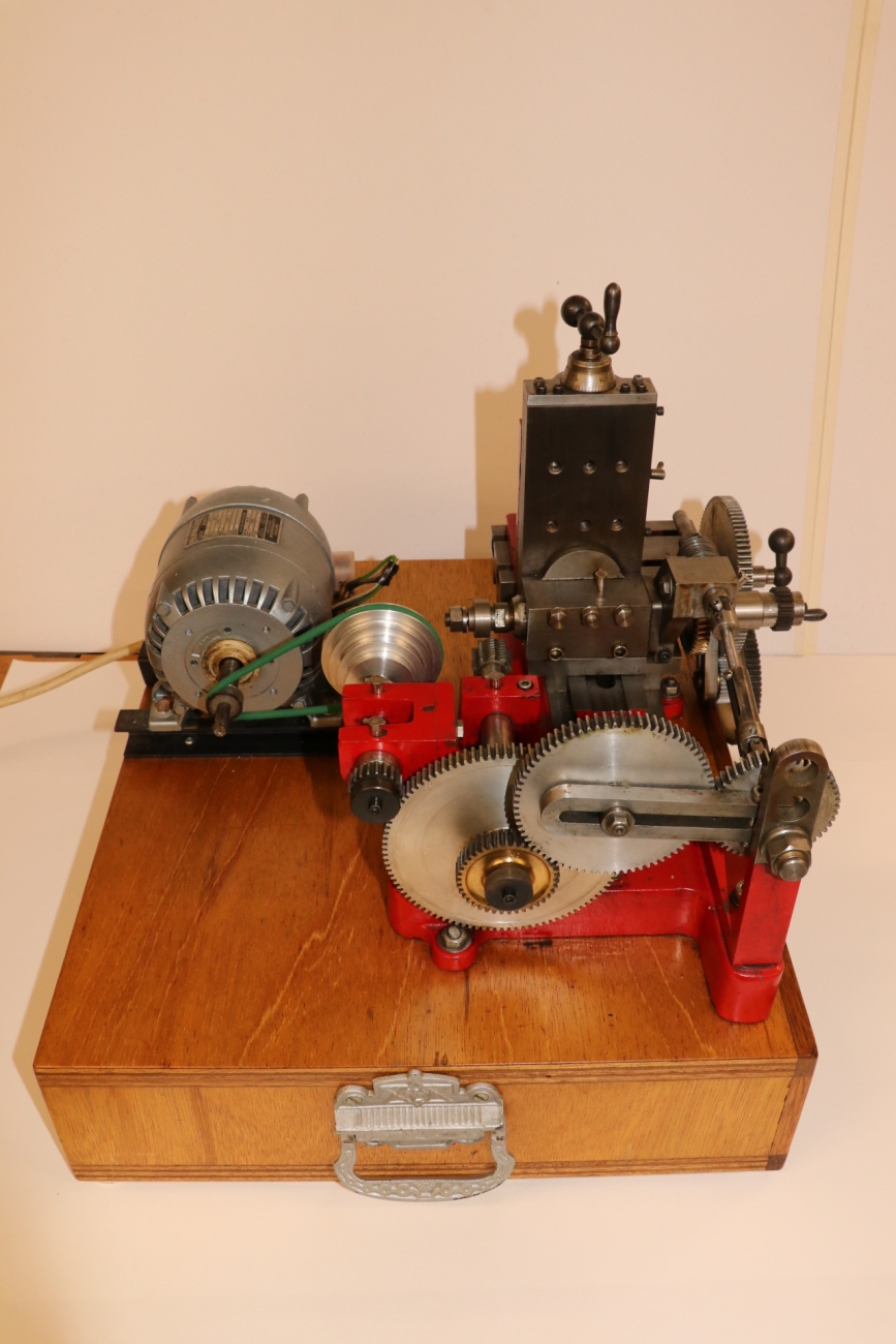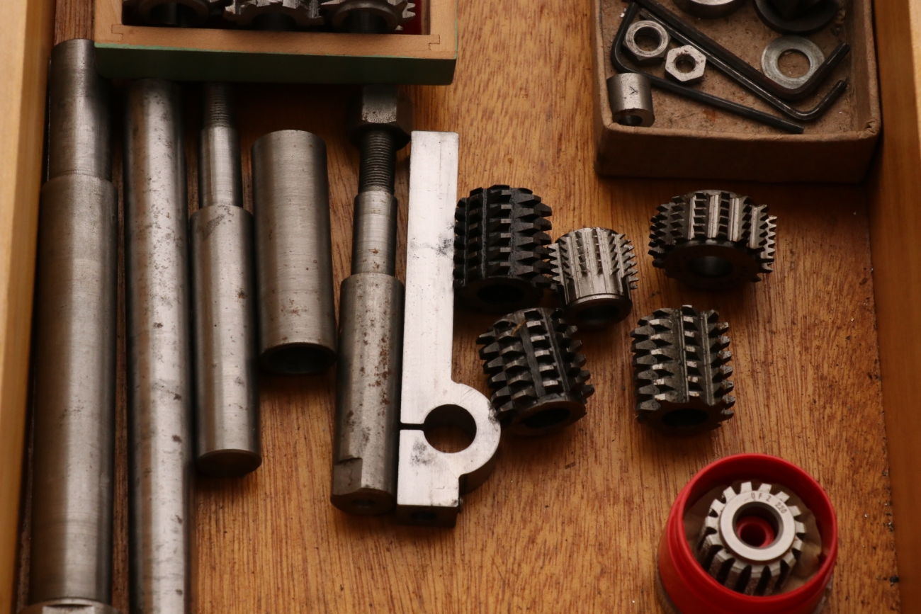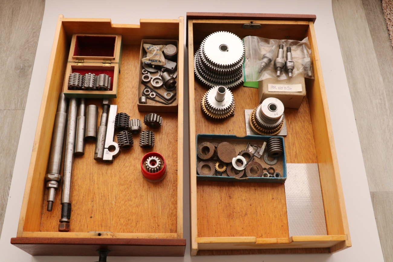 Bench-top gear hobbing machine produced from the College Engineering castings kit. Very handy, very well made in full working order. From the very little history that I have, I believe it was a prize-winning machine. Mounted on a stout base with two drawers containing hobs, changewheels, adapters and other accessories. The Parvalux motor is running smoothly and quietly, and has a new belt. I have had the machine running, and all the bearings and ways are as they should be. The electrical wiring is apparently OK, but this is not my area of expertise, so a thorough check is advised. £1100 or best offer