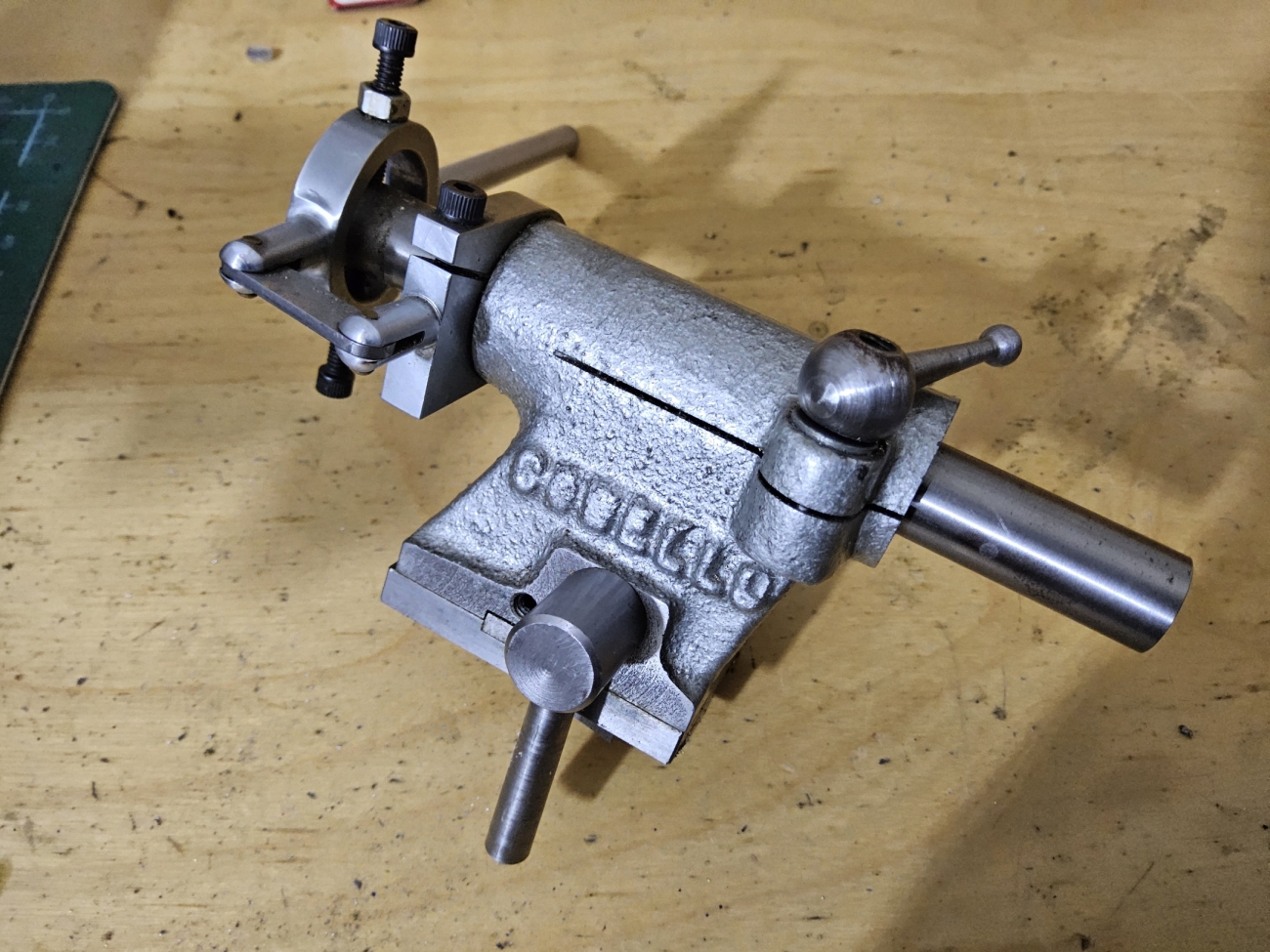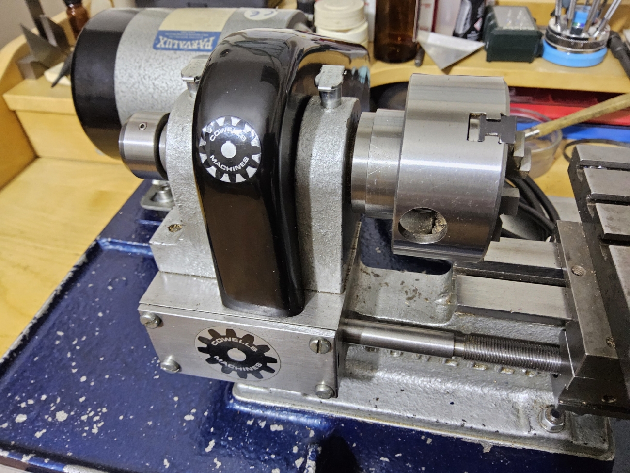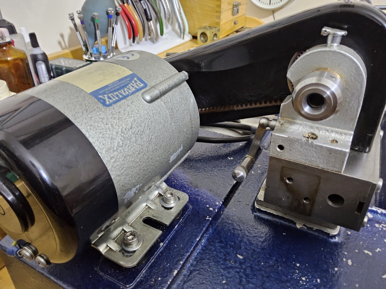 For Sale: Cowells 90CW lathe—the special type intended for use by watch and clock makers. A short history of the lathe: I am a retired clockmaker in the SW of England, and used this Cowells lathe within my clock-making career. The lathe is In very good condition and complete with the following accessories: 3-jaw chuck and key, the maker’s operation manual, sensitive lever-feed tailstock, taper-turning top slide, 8 mm collet housing (complete with drawbars) , 60-division headstock spindle indexing, drill chuck and key, 4-way toolpost, fixed steady, travelling steady. faceplate, tailstock rotating centre and the correct high-quality Parvalux motor.