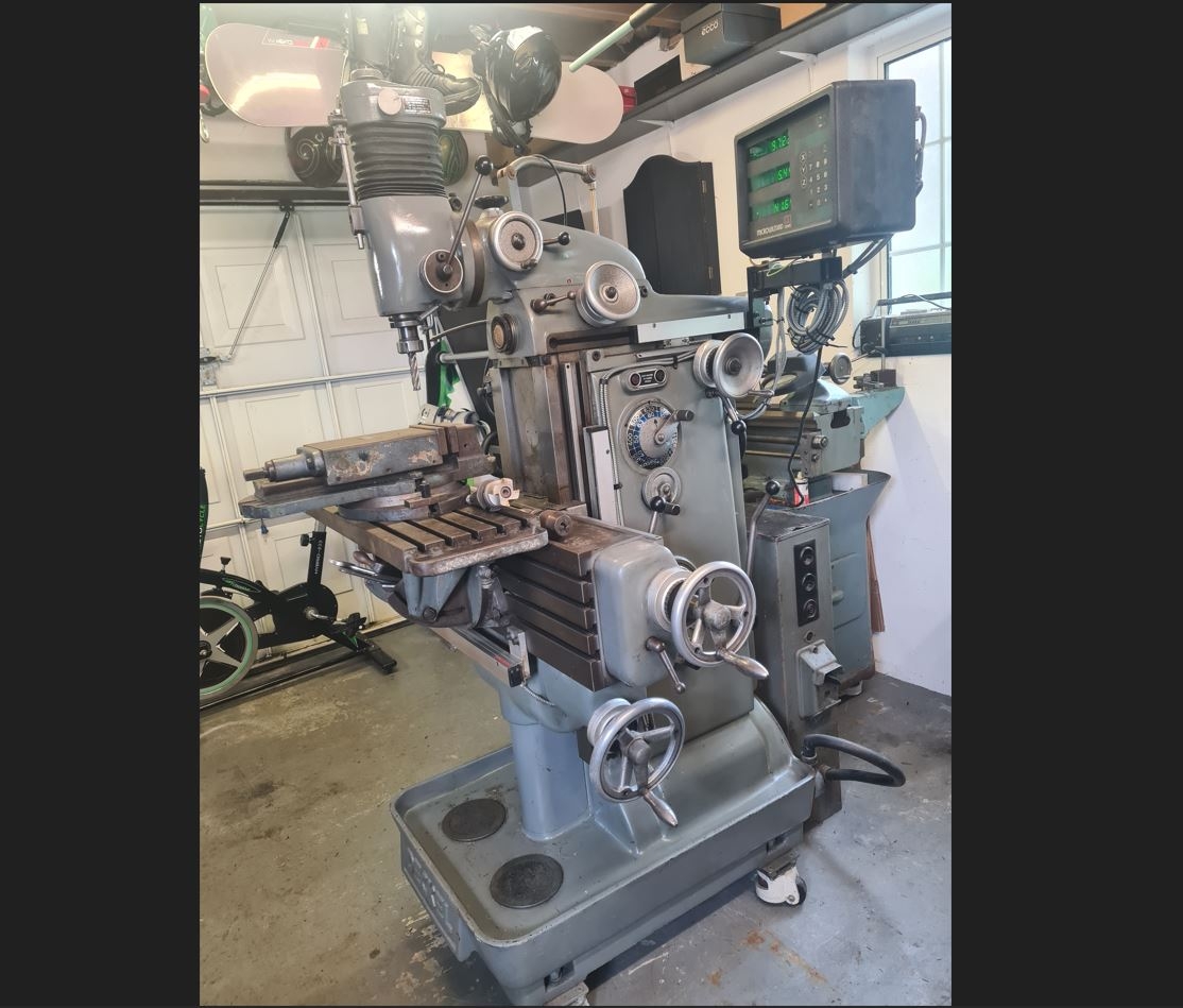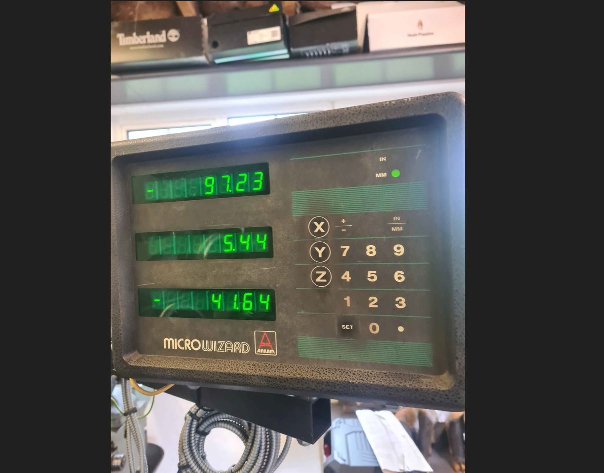 Deckel FP2 Milling machine complete with Deckel FVB2 precision fine boring head, Anilam Wizard 3 axis digital readout for mm or inch. It’s the larger travel model, X/Y/Z: 500, 200, 400mm. Standard RPM is 40-2000 but with the attached fine boring head can go all the way up to 6300 rpm. The machine is converted to single-phase 230V without needing an inverter.