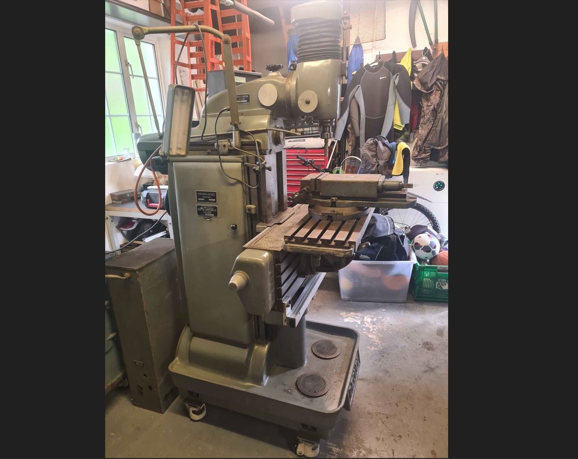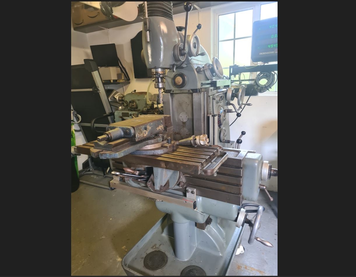 Complete with a very handy universal tilting and swivelling table, large Jones and Shipman Vice on swivel base. Everything needed for horizontal milling: overarm with arbor and spacers as well as a selection of horizontal cutters.