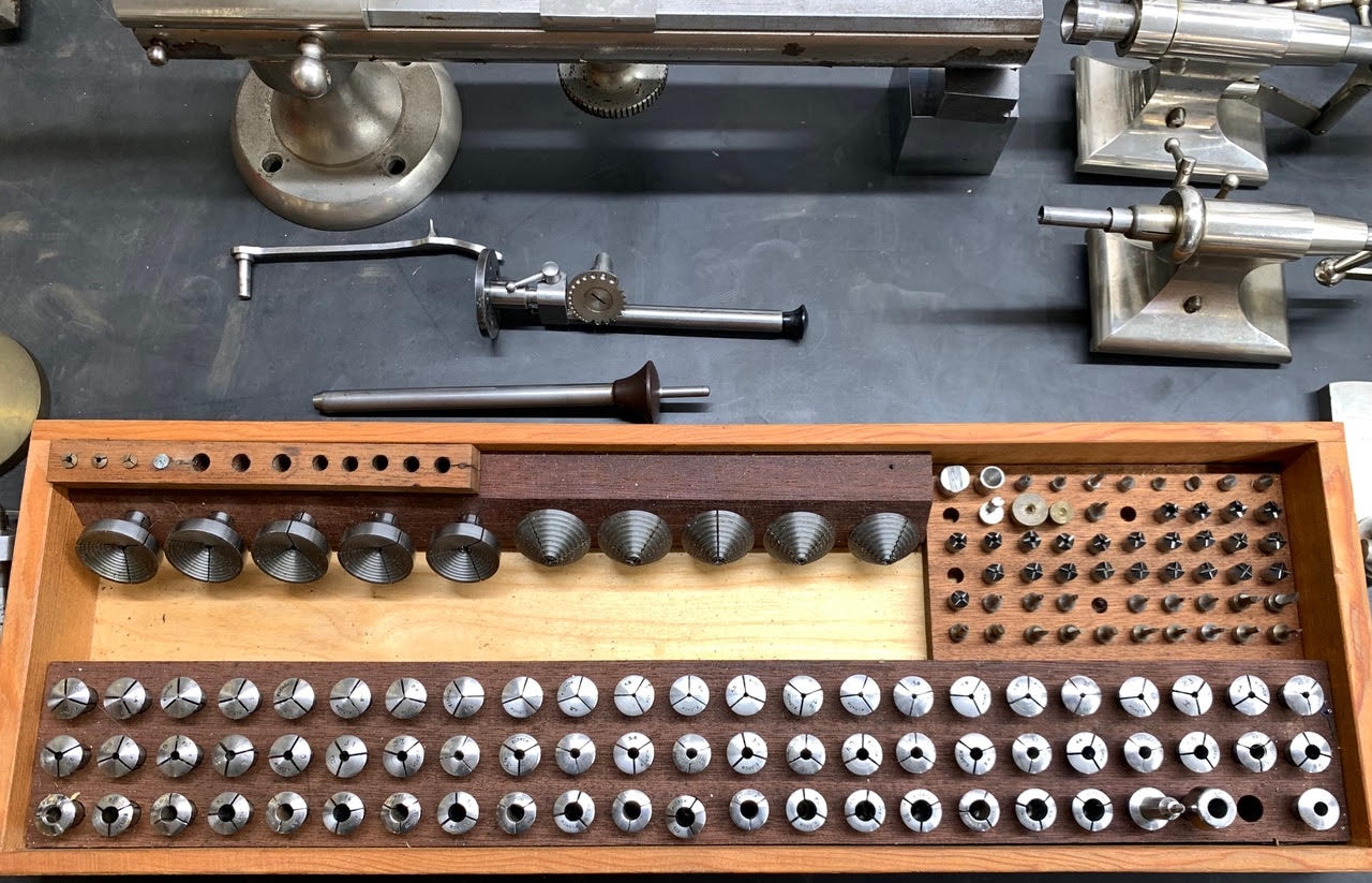 - Two tailstocks, one a standard drilling tailstock that takes 8mm collets, the other with a removable runner to allow the use of other runners.