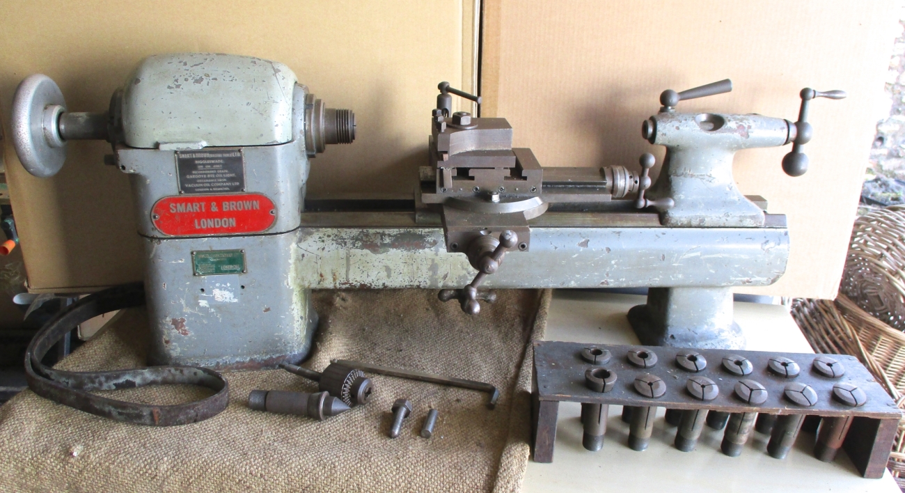 Smart and Brown Model L Plain-turning Precision Lathe. Complete, but it needs to be built into a bench or cabinet. Lathe, Motor and collets, etc, all you see is what you get.