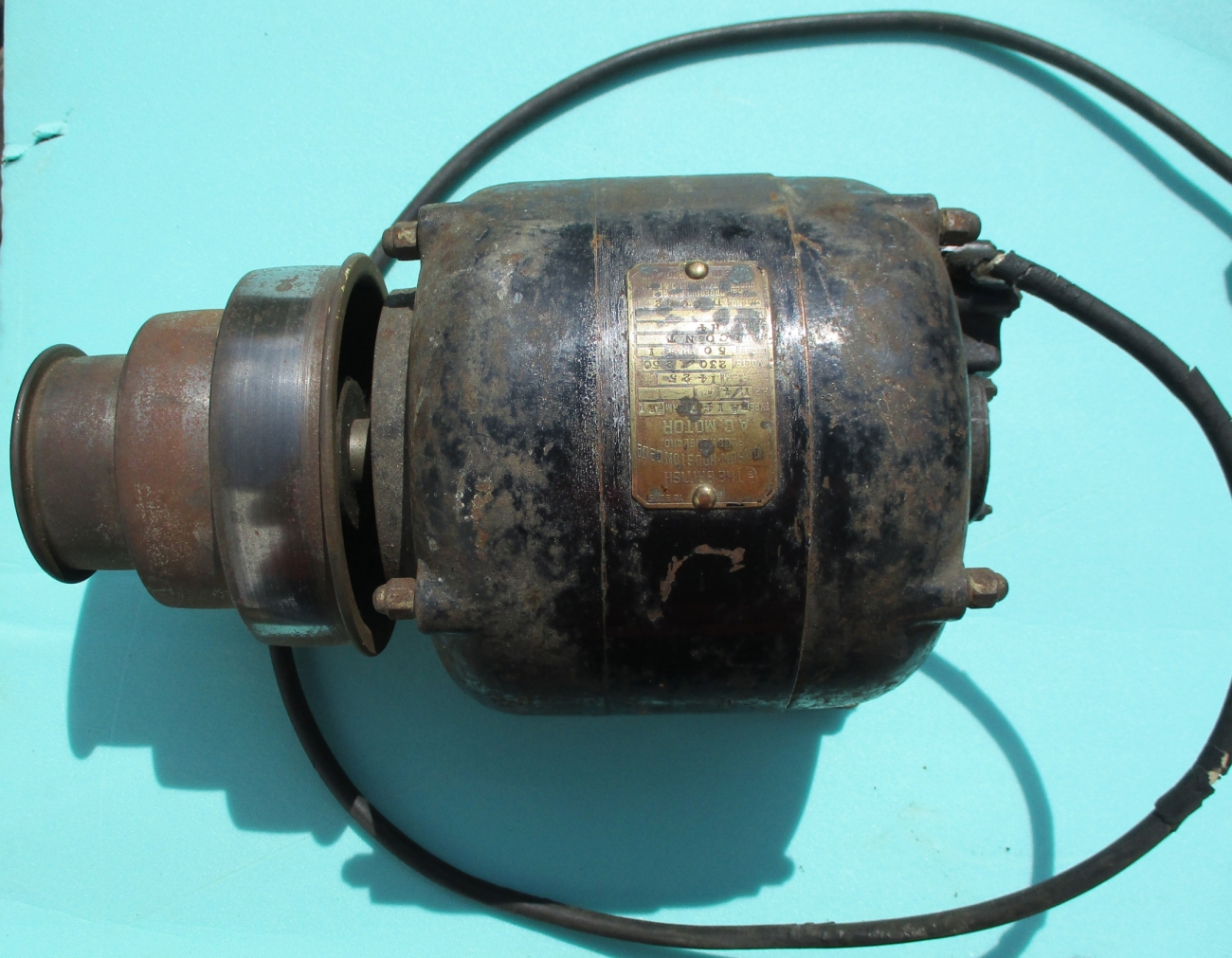 The motor works, but it needs a new mains cable and has a small chink in edge of the small motor pulley. Collection from near the M5, Wellington in Somerset. £200.00. Please email trevor@greenprops.org