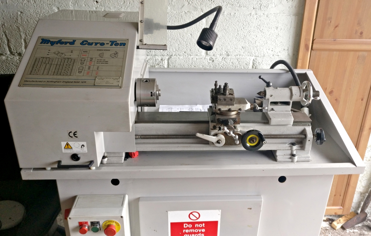 A very late-model, probably from the early 1990s, was the "Euro-Ten", this being mounted on a cabinet stand with a full-length splash back and enclosing, tapering side sections and a large, gas-strut-supported hinged cover that, when lowered, left just the chuck exposed. Full safety switchgear was fitted, including a foot-operated kill button. Although photographic negatives survive in the maker's archive, no publicity or production figures appear to have survived, but, from its appearance, it would have been a relatively expensive machine.