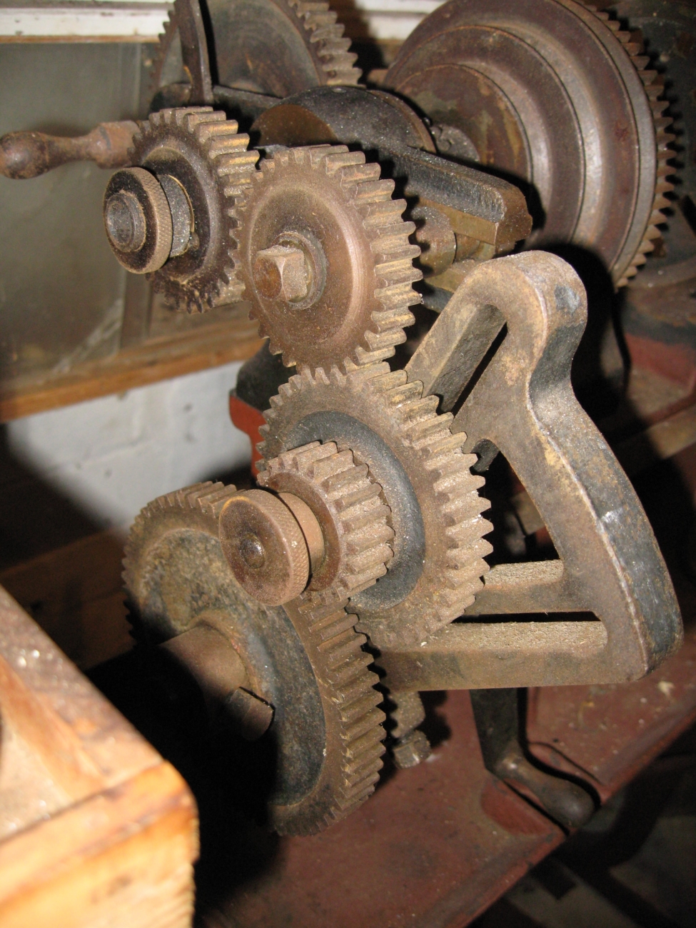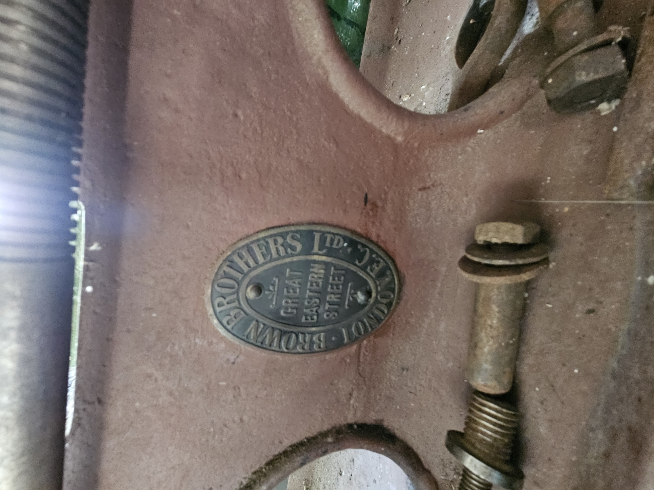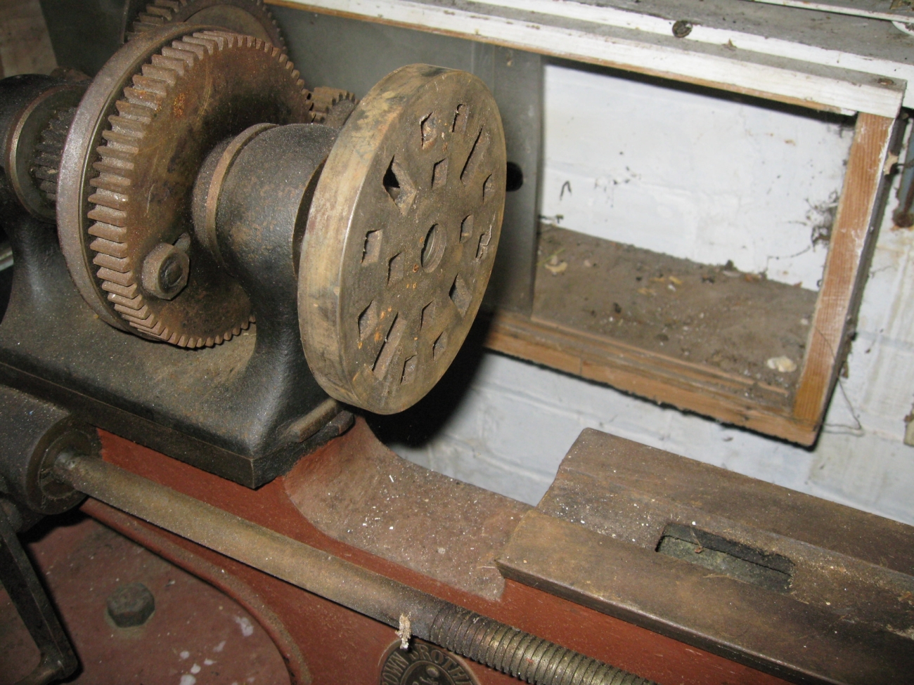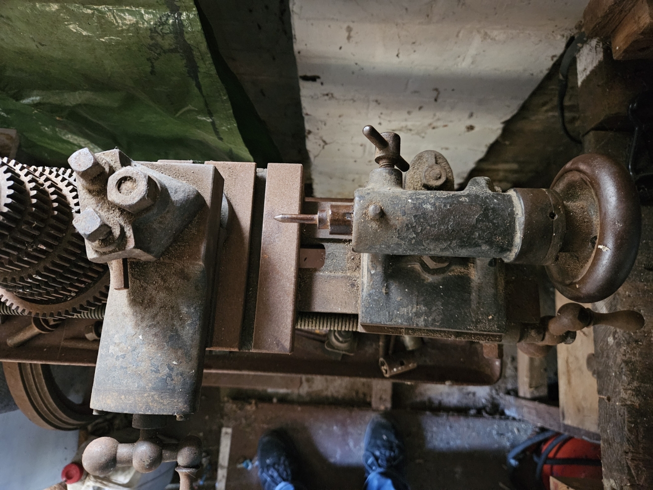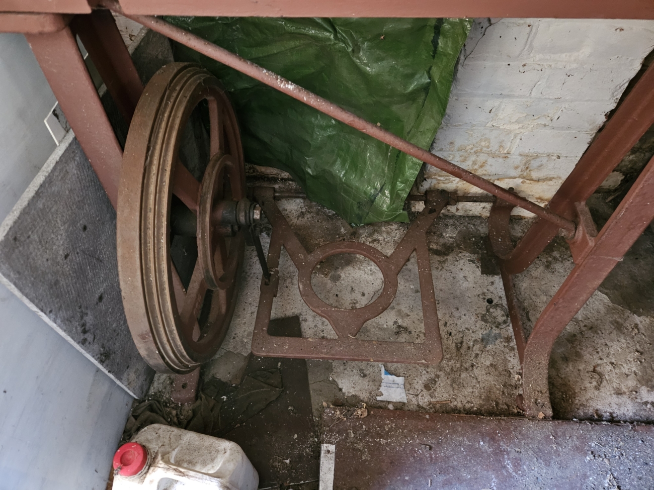Brown Brothers backgeared and screwcutting treadle lathe, mounted on the maker’s treadle stand and very similar to the contemporary Drummond 3.5” model. The lathe may well have been the first venture by Colchester. See: https://lathes.co.uk/colchester1909/
