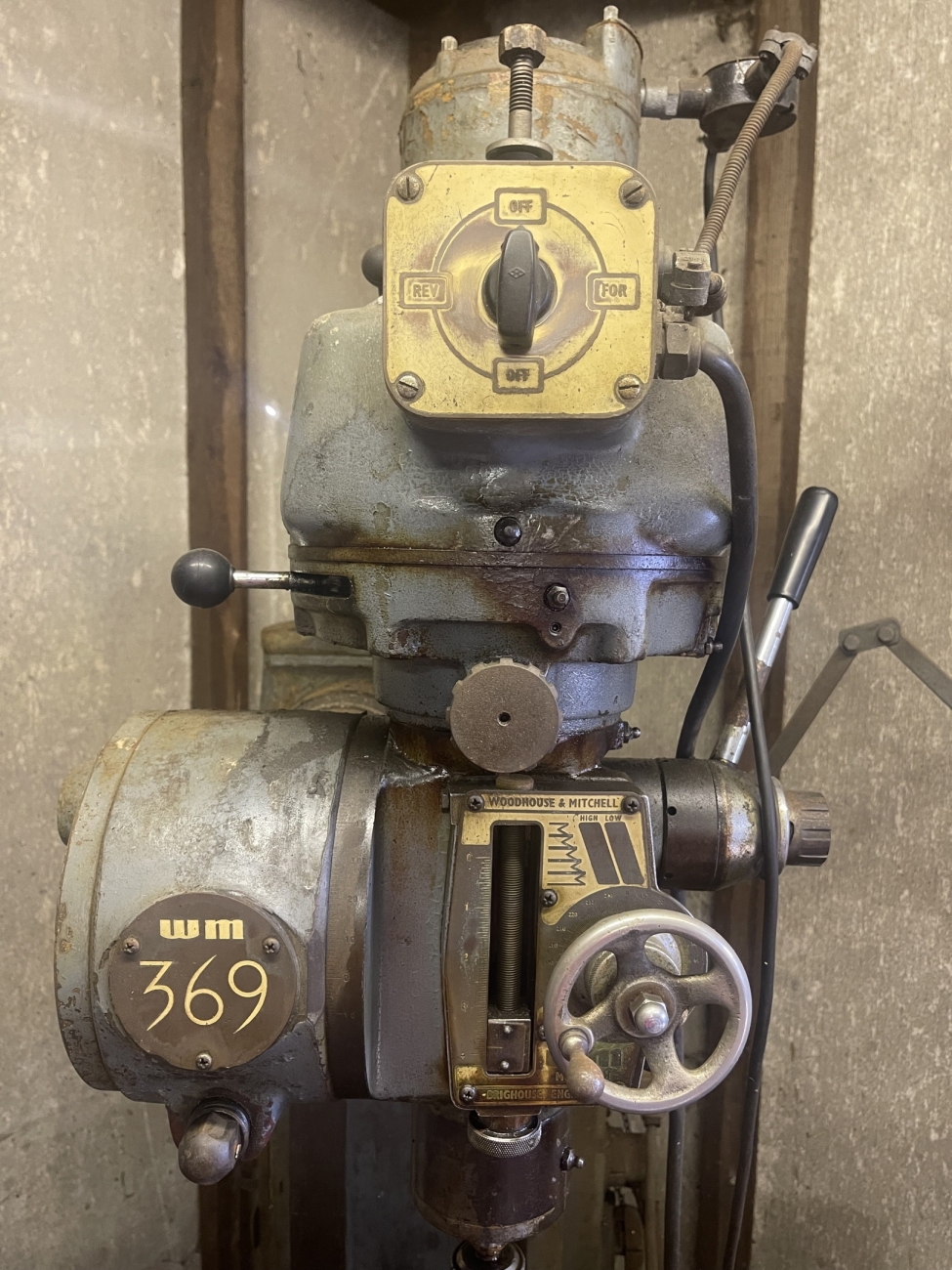 Woodhouse & Mitchell 369 Universal ram-head milling. I have inherited this milling machine but I'm afraid I don't know too much about it. It is complete with power feed to the table, two machine vices, a large rotary table and a light unit